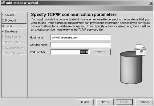 Figure 6.34. Add Database WizardSpecify TCP/IP communications parameters
