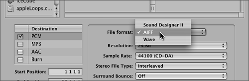 When Logic is finished bouncing, you are left with a 16-bit stereo AIFF at 44.1 kHz.