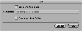 The New dialog appears with two check boxes: "Use song template" and "Create project folder." We'll return to the "Create project folder" option in a minute. For now, let's concentrate on the "Use song template" option.