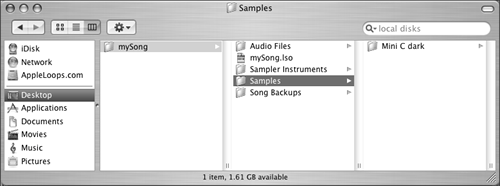 Notice that Logic has created new folders to hold the sampler instrument settings and samples!