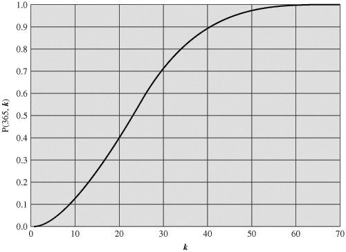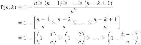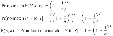 | [Page 346 (continued)] In this appendix, we derive the mathematical justification for the birthday attack. We begin with a related problem and then look at the problem from which the name "birthday attack" is derived. Related Problem A general problem relating to hash functions is the following. Given a hash function H, with n possible outputs and a specific value H(x), if H is applied to k random inputs, what must be the value of k so that the probability that at least one input y satisfies H(y) = H(x) is 0.5? For a single value of y, the probability that H(y) = H(x) is just 1/n. Conversely, the probability that H(y) H(n)]. If we generate k random values of y, then the probability that none of them match is just the product of the probabilities that each individual value does not match, or [1 (1/n)]k. Thus, the probability that there is at least one match is 1 [1 (1/n)]k. The binomial theorem can be stated as follows:  For very small values of a, this can be approximated as (1 ka). Thus, the probability of at least one match is approximated as 1 [1 (1/n)]k 1 [1 (n)] = k/n. For a probability of 0.5, we have k = n/2. In particular, for an m-bit hash code, the number of possible codes is 2m and the value of k that produces a probability of one-half is Equation 11-1  [Page 347]The Birthday Paradox The birthday paradox is often presented in elementary probability courses to demonstrate that probability results are sometimes counterintuitive. The problem can be stated as follows: What is the minimum value of k such that the probability is greater than 0.5 that at least two people in a group of k people have the same birthday? Ignore February 29 and assume that each birthday is equally likely. To answer, let us define P(n, k) = Pr[at least one duplicate in k items, with each item able to take on one of n equally likely values between 1 and n] Thus, we are looking for the smallest value of k such that P(365, k) 0.5. It is easier first to derive the probability that there are no duplicates, which we designate as Q(365, k 365, then it is impossible for all values to be different. So we assume 365. Now consider the number of different ways, k values with no duplicates. We may choose any of the 365 values for the first item, any of the remaining 364 numbers for the second item, and so on. Hence, the number of different ways is Equation 11-2  If we remove the restriction that there are no duplicates, then each item can be any of 365 values, and the total number of possibilities is 365k. So the probability of no duplicates is simply the fraction of sets of values that have no duplicates out of all possible sets of values:  and Equation 11-3  This function is plotted in Figure 11.10. The probabilities may seem surprisingly large to anyone who has not considered the problem before. Many people would guess that to have a probability greater than 0.5 that there is at least one duplicate, the number of people in the group would have to be about 100. In fact, the number is 23, with P(365, 23) = 0.5073. For k = 100, the probability of at least one duplicate is 0.9999997. Figure 11.10. The Birthday Paradox (This item is displayed on page 348 in the print version)  Perhaps the reason that the result seems so surprising is that if you consider a particular person in a group, the probability that some other person in the group has the same birthday is small. But the probability that we are concerned with is the probability that any pair of people in the group has the same birthday. In a group of 23, there are (23(23 1))/2 = 253 different pairs of people. Hence the high probabilities. Useful Inequality Before developing a generalization of the birthday problem, we derive an inequality that will be needed: Equation 11-4  [Page 348]Figure 11.11 illustrates the inequality. To see that the inequality holds, note that the lower line is the tangent to ex at x = 0. at The slope of that line is just the derivative of ex at x = 0;  Figure 11.11. A Useful Inequality  [Page 349]The tangent is a straight line of the form ax + b, with a = 1, and the tangent at x = o must equal eo Thus, the tangent is the function (1 x), confirming the inequality of Equation (11.4). Further, note that for small x, we have (1 x) eThe General Case of Duplications The birthday problem can be generalized to the following problem: Given a random variable that is an integer with uniform distribution between 1 and n and a selection of k instances (k n, k), that there is at least one duplicate? The birthday problem is just the special case with n = 365. By the same reasoning as before, we have the following generalization of Equation (11.3): Equation 11-5  We can rewrite as  Using the inequality of Equation (11.4):  Now let us pose the question: What value of k is required such that P(n, k) 0.5? To satisfy the requirement, we have  For large k, we can replace k x (k 1) by k2, and we get Equation 11-6  As a reality check, for n = 365, we get which is very close to the correct answer of 23. We can now state the basis of the birthday attack in the following terms. Suppose we have a function H, with 2m possible outputs (i.e., an m-bit output). If H is applied to k random inputs, what must be the value of k so that there is the probability of at least one duplicate [i.e., H(x) = H(y) for some inputs x, y)]? Using the approximation in Equation (11.6): [Page 350] Equation 11-7  Overlap between Two Sets There is a problem related to the general case of duplications that is also of relevance for our discussions. The problem is this: Given an integer random variable with uniform distribution between 1 and n and two sets of k instances (k n, k), that the two sets are not disjoint; that is, what is the probability that there is at least one value found in both sets? Let us call the two sets X and Y, with elements {x1, x2,..., xk} and {y1, y2,..., yk}, respectively. Given the value of x1, the probability that y1 = x1 is just 1/n, and therefore probability that 