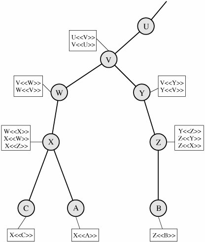 The CA signs the certificate with its private key. If the corresponding public key is known to a user, then that user can verify that a certificate signed by the CA is valid. This is the typical digital signature approach illustrated in Figure 11.5c. Obtaining a User's Certificate User certificates generated by a CA have the following characteristics: Any user with access to the public key of the CA can verify the user public key that was certified. No party other than the certification authority can modify the certificate without this being detected. Because certificates are unforgeable, they can be placed in a directory without the need for the directory to make special efforts to protect them. If all users subscribe to the same CA, then there is a common trust of that CA. All user certificates can be placed in the directory for access by all users. In addition, a user can transmit his or her certificate directly to other users. In either case, once B is in possession of A's certificate, B has confidence that messages it encrypts with A's public key will be secure from eavesdropping and that messages signed with A's private key are unforgeable. If there is a large community of users, it may not be practical for all users to subscribe to the same CA. Because it is the CA that signs certificates, each participating user must have a copy of the CA's own public key to verify signatures. This public key must be provided to each user in an absolutely secure (with respect to integrity and authenticity) way so that the user has confidence in the associated certificates. Thus, with many users, it may be more practical for there to be a number of CAs, each of which securely provides its public key to some fraction of the users. Now suppose that A has obtained a certificate from certification authority X1 and B has obtained a certificate from CA X2. If A does not securely know the public key of X2, then B's certificate, issued by X2, is useless to A. A can read B's certificate, but A cannot verify the signature. However, if the two CAs have securely exchanged their own public keys, the following procedure will enable A to obtain B's public key: A obtains, from the directory, the certificate of X2 signed by X1. Because A securely knows X1's public key, A can obtain X2's public key from its certificate and verify it by means of X1's signature on the certificate. A then goes back to the directory and obtains the certificate of B signed by X2 Because A now has a trusted copy of X2's public key, A can verify the signature and securely obtain B's public key. [Page 423]A has used a chain of certificates to obtain B's public key. In the notation of X.509, this chain is expressed as X1<<X2>> X2 <<B>> In the same fashion, B can obtain A's public key with the reverse chain: X2<<X1>> X1 <<A>> This scheme need not be limited to a chain of two certificates. An arbitrarily long path of CAs can be followed to produce a chain. A chain with N elements would be expressed as X1<<X2>> X2 <<X3>>... XN<<B>> In this case, each pair of CAs in the chain (Xi, Xi+1) must have created certificates for each other. All these certificates of CAs by CAs need to appear in the directory, and the user needs to know how they are linked to follow a path to another user's public-key certificate. X.509 suggests that CAs be arranged in a hierarchy so that navigation is straightforward. Figure 14.5, taken from X.509, is an example of such a hierarchy. The connected circles indicate the hierarchical relationship among the CAs; the associated boxes indicate certificates maintained in the directory for each CA entry. The directory entry for each CA includes two types of certificates: Figure 14.5. X.509 Hierarchy: A Hypothetical Example (This item is displayed on page 424 in the print version)  In this example, user A can acquire the following certificates from the directory to establish a certification path to B: X<<W>> W <<V>> V <<Y>> <<Z>> Z <<B>> When A has obtained these certificates, it can unwrap the certification path in sequence to recover a trusted copy of B's public key. Using this public key, A can send encrypted messages to B. If A wishes to receive encrypted messages back from B, or to sign messages sent to B, then B will require A's public key, which can be obtained from the following certification path: Z<<Y>> Y <<V>> V <<W>> W <<X>>X <<A>> B can obtain this set of certificates from the directory, or A can provide them as part of its initial message to B. Revocation of Certificates Recall from Figure 14.4 that each certificate includes a period of validity, much like a credit card. Typically, a new certificate is issued just before the expiration of the old one. In addition, it may be desirable on occasion to revoke a certificate before it expires, for one of the following reasons: The user's private key is assumed to be compromised. The user is no longer certified by this CA. The CA's certificate is assumed to be compromised. [Page 424]Each CA must maintain a list consisting of all revoked but not expired certificates issued by that CA, including both those issued to users and to other CAs. These lists should also be posted on the directory. Each certificate revocation list (CRL) posted to the directory is signed by the issuer and includes (Figure 14.4b) the issuer's name, the date the list was created, the date the next CRL is scheduled to be issued, and an entry for each revoked certificate. Each entry consists of the serial number of a certificate and revocation date for that certificate. Because serial numbers are unique within a CA, the serial number is sufficient to identify the certificate. When a user receives a certificate in a message, the user must determine whether the certificate has been revoked. The user could check the directory each time a certificate is received. To avoid the delays (and possible costs) associated with directory searches, it is likely that the user would maintain a local cache of certificat