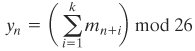 where the xi are the four binary digits of the plaintext block, the yi are the four binary digits of the ciphertext block, the kij are the binary coefficients, and arithmetic is mod 2. The key size is just n2, in this case 16 bits. The danger with this kind of formulation is that it may be vulnerable to cryptanalysis by an attacker that is aware of the structure of the algorithm. In this example, what we have is essentially the Hill cipher discussed in Chapter 2, applied to binary data rather than characters. As we saw in Chapter 2, a simple linear system such as this is quite vulnerable.