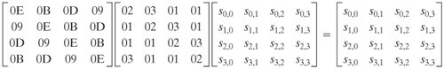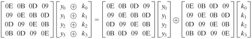 To see this, suppose that the first column of State Si is the sequence (y0, y1, y2, y3) and the first column of the round key wj is (k0, k1, k2, k3). Then we need to show that