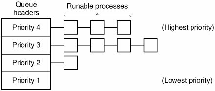 It is often convenient to group processes into priority classes and use priority scheduling among the classes but round-robin scheduling within each class. Figure 2-27 shows a system with four priority classes. The scheduling algorithm is as follows: as long as there are runnable processes in priority class 4, just run each one for one quantum, round-robin fashion, and never bother with lower priority classes. If priority class 4 is empty, then run the class 3 processes round robin. If classes 4 and 3 are both empty, then run class 2 round robin, and so on. If priorities are not adjusted occasionally, lower priority classes may all starve to death.