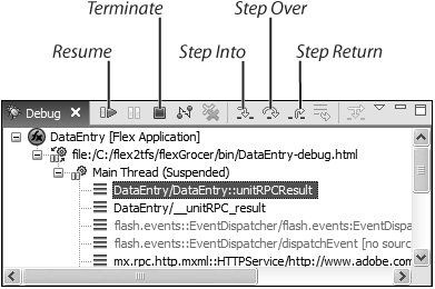 | 2. | Debug the DataEntry.mxml application. Be sure that you are viewing the Flex Debugging perspective in Flex Builder.