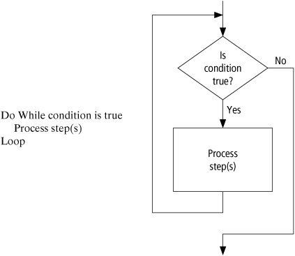 We need a test (or decision) to tell when the loop should end. Without an exit condition, the loop would repeat endlessly (an infinite loop). One way to control the number of times a loop repeats (often referred to as the number of passes or iterations) is to check a condition before each pass through the loop and continue executing the loop as long as the condition is true. See Figure 2.7.