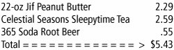 is a multiple of 10. For instance, for the UPC in Figure 8.11, 3 · 0 + 7 + 3 · 0 + 7 + 3 · 3 + 4 + 3 · 0 + 0 + 3 · 9 + 0 · 0 + 3 · 3 + 4 = 40. Figure 8.13. A Universal Product Code.  Since 40 = 4 · 10, 40 is a multiple of 10. In the event that the cashier has to enter the UPC manually and mistypes a digit, the above sum will usually not add up to a multiple of 10. Write a program to simulate an automated check-out counter at a supermarket. A master sequential file, called UPC.TXT, should have a record for each item consisting of fields for the UPC, name of the item, and the price of the item. For instance, the file might contain the following record: 070734000034 Celestial Seasons Sleepytime Tea 2.59 The file should be ordered with respect to the UPCs. The program should allow the cashier to enter UPCs one at a time, should keep a running total of the number of items processed, and should place the UPCs in an array. Each UPC should be checked with the sum (*) as soon as it is entered and should be reentered if the sum is not a multiple of 10. After all items have been processed, the program should sort the array of UPCs and then produce a receipt similar to the one in Figure 8.14 after making just one pass through the master sequential file. Figure 8.14. Sample output of Programming Project 10.  |