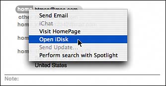 Address Book allow you to connect directly to a .Mac user's iDisk. In the user's Address Book card, click the identifier (such as