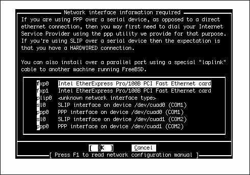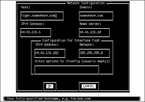 | The simplest way to configure your Ethernet card is by using Sysinstall. The Sysinstall method probably is familiar-looking to anyone who has gone through this process on a Windows or Macintosh machine. The first time you ask Sysinstall to do anything that requires a network connection (such as performing a network installation of the system, browsing packages, and various other tasks), it opens the network-configuration window, in which you can set the TCP/IP options for your Ethernet card visually. If you're already up and running in multiuser mode and not in the initial system installation process, you can get to Sysinstall's TCP/IP configuration screen easily by running /usr/sbin/sysinstall, selecting Configure from the main menu, and then choosing the Media option. In this submenu, select FTP and some FTP server (it doesn't matter which; all you're doing here is triggering the network-configuration procedure, not installing any software). A dialog asks "Running Multiuser, Assume that the Network Is Already Configured?" Choose No to enter the network-configuration screens; the Network Interface Selection screen opens, as shown in Figure 23.1. Figure 23.1. Selecting your Ethernet card in the Sysinstall program.  The Network Interface selection screen presents you with a list of the interfaces that FreeBSD has found in your system. You'll probably see a number of choices that don't make a lot of sense. In the figure, you can see choices such as lp0 or plip0 (the parallel port) and various PPP or SLIP options, and IPv6 devices such as gif0 and faith0. You can ignore most of the options in the screen because the one you want is probably at the top. The one you're using in this example is fxp1, an Intel EtherExpress Pro/100B PCI card. When you select your Ethernet card, you're given two dialogs: a choice to let the system try to configure the card automatically using IPv6 and then another choice to let it try using DHCP. Answer No to both of these. You're then presented with the visual Network Configuration screen, as shown in Figure 23.2. Figure 23.2. The visual Network Configuration screen in the Sysinstall program.  Tip If your network is set up to use dynamically assigned IP addresses that are distributed using DHCP, you can choose Yes when prompted for automatic DHCP configuration and avoid a lot of the complexities of manually configuring your network. Refer to Chapter 35, "Dynamic Host Configuration Protocol (DHCP)," for more information on using DHCP both in a client and a server capacity. Each field in this screen has a short description at the bottom of the window, but here's some further information about them: Host This is the hostname, which is just the first part of the machine's fully qualified domain name. For instance, if your machine is simba.example.com, the Host: field should be set to simba. Domain This is the rest of the domain name, or example.com. This can be a composite domain for networks with named subnets, such as cslab.ivyleague.edu. IPv4 Gateway This is the IP address of your gateway router. Use the next-hop router closest to your machine, or whatever your network administrator or ISP identifies as your gateway address. If you are connected to the Internet via a DSL/cable modem or similar device, its IP address (which is assigned by the ISP) should be your gateway. This router will be responsible for transmitting any traffic between your machine and any other machines in the world. As you have learned in Chapter 22, "Principles of TCP/IP Networking," a gateway router must be on the same network as your FreeBSD machine's IP address, as defined by the netmask. Name Server The IP address of the most reliable domain name server (DNS) in your network. You should use the DNS provided by your enterprise, ISP, or university network if at all possible; remote name servers are useful as backups, but they won't necessarily be set up to service nonlocal requests reliably. Later in this chapter you will learn how to assign multiple name servers, if necessary. IPv4 Address This is the IP address you're assigning to your Ethernet card. It needs to be on the same subnet as your IPv4 gateway, as matched against your netmask. This was discussed in Chapter 22. Netmask This is used to determine whether a packet's destination is on the local network. Set the field to 255.255.255.0 for a Class C network, which is the most commonly used netmask in most home configurations. Consult your network administrator to make sure what this number should be. Extra options to ifconfig You most likely won't need to put anything in here unless you're a power user looking to tweak the performance of your interface card. Anything you put in here, such as specifying particular media types or duplex modes, will be added to the ifconfig command line that Sysinstall issues in the background. You learn more about this command in "Using ifconfig to Apply Network Settings," later in this chapter. After you've set all these options, select OK. The network settings will be applied to the card on the fly. Whatever you were doing in Sysinstall continuesin this example, Sysinstall connects to your selected FTP server. If the network configuration isn't successful, there's likely a problem with the network settings you entered, and you'll have to go back in and troubleshoot your settings. If you're in an enterprise network, ask your network administrator to give you the correct settings. This process works in much the same way if you're doing a first-time installation of FreeBSD (as you saw in Chapter 2, "Installing FreeBSD"). You are presented with this configuration screen early in the install process. If you're doing a network installation, it will use the settings to pull down the system distribution from the central server. Coping with ISA Ethernet Cards Most PCI Ethernet cards, which describes nearly all Ethernet cards sold today, are very troublefree. All you really need to do, especially if you have 
