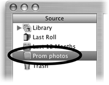 |  Imported photos are placed in the Library. They are also temporarily available through the recent import albums (Last Roll and Last 12 Months) that appear in the "Source" pane (shown on the left and explained on page 10). Import photos from a location on your hard disk or from a CD You can import any photos that you already have stored on your hard disk or that might be on a CD. 1. | Insert a CD (if you have one that contains photos you want to import).