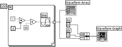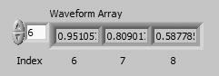 Figure 8.21. Waveform Array on your VI front panel after running it  In the block diagram of Figure 8.20, you specified an initial X and a delta X value for the waveform. Frequently, the initial X value will be zero and the delta X value will be 1. In these instances, you can wire the waveform array directly to the waveform graph terminal, as shown in Figure 8.22, and take advantage of the default delta X and initial X values for a graph.