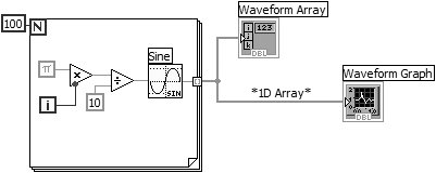 | 13. | Save and close the VI. Name it Graph Sine Array.vi in your MYWORK directory or VI library.