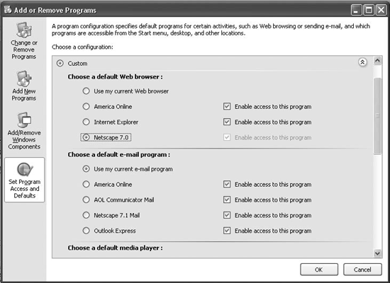 Open the Add or Remove Programs control panel, and then click the Set Program Access and Defaults button in the left column (see Figure 3-4). Select Custom and click the down arrow to the right. Select an alternate browser that you've installed, such as Firefox. (Don't worry if the "Enable access to this program" box appears to be grayed out your new browser will still work.) You can also choose different default programs for email, media player, and instant messaging from this same screen, or disable access to programs you no longer want to use (such as Internet Explorer). Click OK. The next time you click a hyperlink, your new browser should launch free of spies, at least for the time being. annoyances 3-4. Microsoft may automatically makes its browser, email software, and media player your defaults, but you don't have to take it. The Set Program Access and Defaults dialog lets you pick your own default tools-Redmond be damned.  Shoot the Messenger The Annoyance: The other day a message popped up over my Windows system tray asking "Want sex?" (Sure I do, but I prefer to have mine with humans, not computers.) I wasn't surfing the Web and haven't downloaded anything to my hard disk. What the heck happened? The Fix: You've been had by a spammer exploiting a flaw (or, if you like, a feature) in Windows Messenger Service. Though easily confused with MSN Messenger, Microsoft's online chat software, Windows Messenger Service was designed to let network administrators communicate with folks over their corporate networks. These days, it's used by a handful of noxious spammers to spread ads for porn sites and other charming services. Fortunately the fix is easy. Simply download and install Gibson Research's free Shoot The Messenger applet at http://www.grc.com/stm/shootthemessenger.htm. Click the Disable Messenger button, and then Exit. Simplicity itself. Or, better yet, download Windows XP Service Pack 2, which turns WMS off by default (see the sidebar, "Making the Move to Service Pack 2"). SHOULD YOU DUMP INTERNET EXPLORER? It's no secret that the world's number one browser has a big bull's-eye on its back. Even the U.S. Computer Emergency Readiness Team the country's top computer security wonks says IE is way too vulnerable to attacks. In an advisory issued in June 2004, US-CERT said users should abandon IE for a more secure alternative (for the nitty-gritty, geeky details seek out http://www.kb.cert.org/vuls/id/713878). This advisory followed the discovery of malicious code known as download.ject or Scob that could be used to infect web sites and capture the keystrokes of any users who visit them. The site responsible for distributing Scob was shut down shortly after being discovered, and Microsoft says it was "unaware of any widespread customer impact" due to the code. (Then again, how would they know?) Since then, some 50 million users have downloaded and installed Firefox (http://www.getfirefox.com), a free open-source browser that gives web sites far less latitude to muck with people's computers. That doesn't mean Firefox is flawless. In its March 2005 Internet Security Threat Report, Symantec reported that Firefox had more vulnerabilities than IE, but IE's security holes were more serious. In summer 2005, Microsoft plans to release a beta of Internet Explorer 7, its first new browser release in years. According to Microsoft, the new IE will provide "stronger defenses against phishing, malicious software and spyware," though the company has yet to describe what those defenses will look like. Bottom line? No piece of software is 100 percent secure. But when you're in a shooting war, it's always a smart idea to choose the smaller target. |