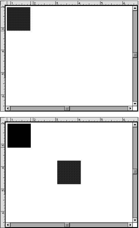 Figure 4.14. When you copy a selected graphic element (top) and choose Edit > Paste in Center, Flash pastes a copy of the element from the Clipboard to the center of the current view (bottom).  To paste the Clipboard contents in their original location - Choose Edit > Paste in Place, or press Shift-