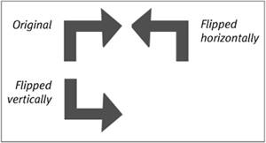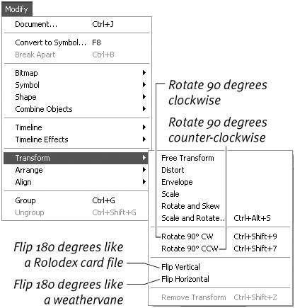 Figure 4.25. The Modify > Transform submenu offers commands for flipping graphic elements vertically and horizontally. It also offers commands for rotating an element in 90-degree increments, both clockwise and counterclockwise.  Figure 4.26 shows the results of the two types of flipping.