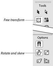 | 2. | In the Tools panel, select the free-transform tool; then click the Rotate and Skew modifier (Figure 4.30).
