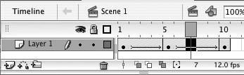 | 8. | Select frame 10, and choose Insert > Timeline > Keyframe.