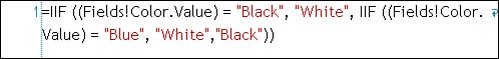Figure 14.20. Editing the BackgroundColor property expression. | Using the Expression Editor The Edit Expression dialog exposes an easy way to construct expressions for most of the report item properties. As your report-development skills get honed, you'll visit this dialog quite frequently. In this case, I replaced the existing expression ("Transparent") with a reference to the Color Field returned by the query. Because the cell whose property I'm editing is in the "details" row of the Table report item, the ReportViewer control interprets these expressions at runtime on a row-by-row basis. Other property expressions can be applied to the entire report, just the header, just the footer, or other specific elements. Think of the expression as the value in an assignment statement such as: TextBox. BackgroundColor=Fields!Color.Value I encourage you to explore the other constants, Globals, Parameters, DataSets, Operators, and Common Functions. This will help you understand what can be selected as component building blocks to build your expression. Sure, the expression can be fairly complexbut be careful. Although the code is syntax checked, it's not "precompiled," so reference errors won't show up until runtime, when the report needs to interpret the expression and actually access the elements. If you jump the gun and try to test the report at this point, you'll immediately discover that you're not done polishing. Consider what happens when you use a black font on a black backgroundit's kinda black. Because of this, you need to add another expression to the cell Color property to set the font color to white when the color is "dark," like black or blue. I'm going to let you figure out how to get to the right property expression, but I'll give you a hint as to the expression in Figure 14.21. Figure 14.21. Setting the Color property expression.  The IIF construct is widely used in report expressions but can be problematic if you aren't careful. It simply returns the first value if the expression is True and the second if the expression is False. In this case, I've doubled up the expression, so it reads "If the column Color data value is black, use white (as the font color), else if the column Color is blue, use whiteif it's neither, use black". Make sense? I discuss how to construct complex expressions in the Reporting Services bookincluding how to build "code-behind" modules that can return values using far more complex code. It's entirely possible to make changes to the RDLC report definition via the report layout designer while the application is being executed. No, these changes are not applied until the ReportViewer recompiles the RDLC when first executed. Buffing the First Coat of Polish and Retesting Before testing the report, I made a few more changes to further polish the report. You have enough instruction at this point to make these changes yourself: Set the background color of the Table report item header row to an attractive color. Set the header row TextBox and Color cell font bold property to True. Resize the initial Form so it's large enough to display the report. Resize the Table report item columns to more closely match the size of the data returned. Once these changes are made, re-run your application and preview the new report. If you've been following along, your report should look like Figure 14.22. This report looks like it's about ready to send to your boss. No, this process did not take that long, so you might want to pretend you're working hard on making the report right before turning it inif the boss thinks the process is too easy, he might think he can do it himself. Note that this report has been "zoomed" to 75% by selecting the zoom level drop-down at runtime. This option permits you to see a report rendered based on the size of the target page width, the whole page, or stepped zoom levels from 500% to 25%. Figure 14.22. The polished report zoomed to 75%. |