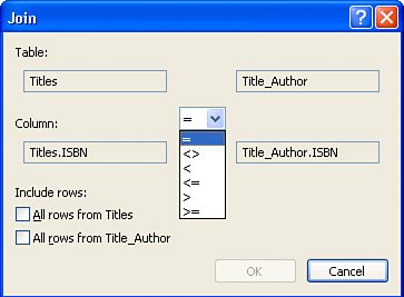 Figure 4.66. The JOIN configuration dialog.  We're ready to move on to the other types of queries that the Query Designer can generate.