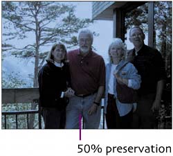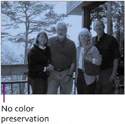 | Apply Tint to create a duotone using a color of your choice. You can optionally preserve some of the original colors of the image, while applying the overall tint. Open the picture for editing, click the Effects tab, and click the Tint icon. To accept the default tint color (white), adjust the Color Preservation slider to indicate the amount of original colors to retain, and then click Apply. Otherwise, to select a different tint color, adjust the Color Preservation slider (if desired). Then click in the Pick Color box to set the initial tint shade. To preview the effect of different colors, drag the eyedropper over the color picker or the color hexagons. As you drag, the picture's tint automatically changes to reflect the new color. Click a color hexagon or a spot on the color picker to set the color. The Step 2 screen reappears. Make a final adjustment to the Color Preservation slider, if necessary.    Click Apply to apply the chosen Tint settings to the image, or click Cancel if you've changed your mind. |