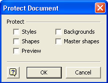 To ensure that styles, shapes, backgrounds, and other settings you specify for a drawing, stencil, or template file are not changed, you can password-protect a Visio document. With the Protect Document command, you can supply a password to prevent others from changing any of the following elements: