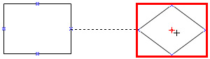 Both 1-D and 2-D shapes provide visual cues that show you where connections can be made (before you connect) and what type of connection has been made (after you connect). On a 2-D shape, each point at which a connection can be made is marked with a connection point, the blue . On a 1-D shape, the ends are marked with square endpoints, which you see when the shape is selected. To help show the direction of the connection, the two endpoints on a 1 D shape are different, as Figure 3-2 shows. The begin point of a 1-D shape has a symbol inside the square. The end point has a + symbol inside the square. Either endpoint can be attached to any connection point on a 2-D shape.