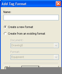 To base the new tag format on an existing format, select the Create From An Existing Format option. Then, from the Document list, select the document or stencil that contains the existing tag format you want to use. The tag formats included in that document or stencil are listed. From the Format list, select the tag format you want to base the new tag format on.