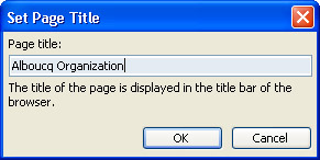 To customize the title that will appear on the title bar when the page is displayed in a browser, click Change Title. In the Page Title box of the Set Page Title dialog box, type a title, and then click OK.