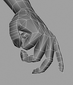 The final stage for the hands is to weight the palm area so it is almost completely controlled by the wrist joint (Figure 14.17). This will also help you to fill out the base area of the fingers if they are pinching. Figure 14.17. Weight the palm area to the wrist.
