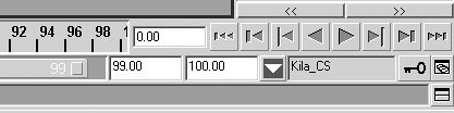 | The main character sets are now set up and can be used to safely store and transfer animation between characters. At this point you might want to store the default pose so you can quickly get back to it. In doing this, you will get your first taste of animation by setting a keyframe. With most game engines, the first frame (or in some cases frame -1) has to be the character in this default pose. Now that we have the character sets, we can do this quickly. 1. | Either select the Kila_CS character set in the Outliner, or go to Character > Select Character Set Node > Kila_CS.