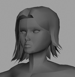 | 5. | Now combine both pieces of geometrythe hairline strip and the front parts of her hairand weld the vertices at the front, making a single, solid object.