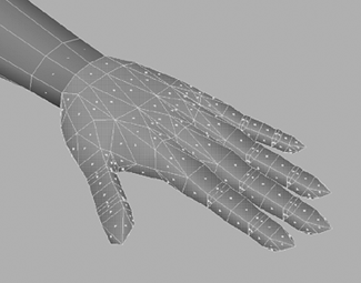 TIP If you are unsure about any specifications check with your manager. Even something as simple as one fewer joint could create problems if you make an incorrect assumption. | 6. | Remove the extra polygons used for the third joints of each of Kila's fingers (Figure 7.36, middle).