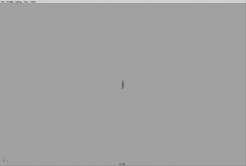 | Figure 10.51. LOD 5's distance from the camera  Our final level of detail weighs in at 120 polygons. She's not much to look at (Figure 10.56), but you have to remember she will never be seen this close in the game. Rename the final group and display layer to represent the polygon count (Kila_120) and save the file as Kila_LOD_Prep.mb. Figure 10.56. LOD 5 up close