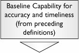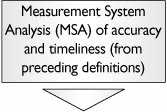 Tool Approach The roadmap commences with |  | For accuracy, a full Attribute MSA or Gage R&R might be required. For timeliness, the focus is on validity of the measure and not so much on the reliability of the measure. Thus, just a solid operational definition and validation probably will suffice. This should be conducted for the process as a whole, not for each of the individual steps in the process. For more detail see "MSAValidity," "MSAAttribute," and "MSAContinuous" in Chapter 7. | |  | This should be conducted for the process as a whole, not for each of the steps in the process. Later, however, it will be important to capture Capabilities for each step along the process, so if freely available at this point, capture them as well. For more detail see "CapabilityAttribute" and "CapabilityContinuous" in Chapter 7. | |  | Continue to Section C in this chapter and consider a defect to be "any time that the perfectly correct entity is not delivered." | |  | It will be necessary to understand what is specifically in the process that is affecting the time. Continue down this roadmap. | |  | It is important to understand the relationship between the Takt Time (the pace of use of entities), the Process Cycle Time (the actual pace of generation of entities), and the Process Lead Time (the time it takes a single entity to progress the length of the process). For more detail see "TimeTakt Time," "TimeGlobal Process Cycle Time," and "TimeProcess Lead Time" in Chapter 7. | |  | This will allow us to understand the volume and variation in demand of each of the different entity types that progress through the process. High-volume, low-variation demand entities might have to be dealt with differently than low-volume, high-variation demand entities. | |  | For the higher volume or key entity types that pass through the process, it is important to understand the demand profile over time. Significant spikes in demand or seasonal fluctuations might cause us to set up the process differently. |