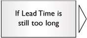 At this point, the Process Lead Time should be significantly shorter. Move to the Control tools as outlined in Chapter 5. |  | If the Process Lead Time is still considered to be too long, there are still a few options available to us: Look to accelerating the pace of the individual VA steps (go to "2: The Pace for a Single Process Step Is Too Slow" in Chapter 4). Add additional resources to the process at the appropriate places (the load chart will help with this). Hold inventory buffers at key locations throughout the process so entities don't have to traverse the whole process to be delivered (only works if the entities aren't unique). Seek to anticipate demand from the Customer. (Is there an earlier trigger available to start the entity through the process?) Examine options to keep the entity "vanilla" longer. (Is it possible to pre-prepare any parts of the entity so less work is required from the point of request?) If all else fails, it might be a case of considering a different process technology.