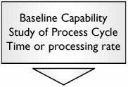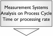 H. Individual Steps Meet Takt, Global Process Does Not Overview If a process as a whole fails to meet the level of downstream demand, its Process Cycle Time is greater than Takt Time. For more detail see "TimeTakt Time" and "TimeGlobal Process Cycle Time" in Chapter 7, "Tools." It is entirely possible that the steps that make up the process are all cycling fast enough, but something falls down between the steps, thus causing the process as a whole to fail. Examples Virtually any process in any industry could exhibit this category of problem. Measuring Performance The measure of the process meeting Takt is the comparison of the Process Cycle Time against Takt. Process Cycle Time is calculated as Tool Approach First we must get an understanding of the current performance with respect to Process Cycle Time: |  | Focus should just be on measuring validitya sound operational definition and consistent measure of Process Cycle Time versus a detailed investigation of Gage R&R. For more detail see "MSAValidity" in Chapter 7. | |  | The data is typically captured over a period of one week to one month (depending on process drumbeat) to get a reasonable estimate of Capability. For more detail see "CapabilityContinuous" in Chapter 7. Historical data will more than likely be sufficient for the purpose. | |  | Use SIPOC at a 50,000-ft. level to understand supply stream linkage issues with external processes. If there are linkage issues, look to investigating supplier alignment (this could be a whole new project). |