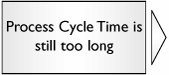 At this point, the process should be performing to Takt and thus the Team can move to the Control tools described in Chapter 5. |  | If the Process Cycle Time is still considered to be too long, there are still a few options available to us: Look to accelerating the pace of the individual value-added steps (go to "2: The Pace for a Single Process Step Is Too Slow" in Chapter 4). Add additional resources to the process at the appropriate places (the load chart will help with this). Hold inventory buffers at key locations throughout the process so entities don't have to traverse the whole process to be delivered (only works if the entities aren't unique). Seek to anticipate demand from the Customer. (Is there an earlier trigger available to start the entity through the process?) Examine options to keep the entity "vanilla" longer (not customized to a particular Customer). Is it possible to pre-prepare any parts of the entity so less work is required from the point of request? If worse comes worst, it might be a case of considering a different process technology.