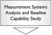 L. Measurement System Broken Overview It is a regular occurrence in businesses (and especially true in Service/Transactional processes) to find that a key measurement system that is relied upon to judge whether an entity is within specification or is just not up to par. The impact of this can be huge because the process might be delivering defective entities to the Customer and reworking good ones based on an unsound measurement. Usually this is a subproject discovered by a larger project looking at the operations process itself. Nevertheless, it can yield significant results in its own right. Examples Industrial. Production gages used to judge final quality Healthcare. Charging, triage Service/Transactional. Quoting accurately, weighing product Measuring Performance Performance of a measurement system is built around the metrics used in Measurement Systems Analysis, namely % R&R, P/T Ratio, Repeatability, Reproducibility, and Distinct Categories. Notice that this list only contains the MSA metrics for continuous metrics (see "MSAContinuous" and "KPOVs and Data" in Chapter 7, "Tools"). There are attribute metric equivalents, but in general attribute measurement systems are usually limited at best for this type of use. Strive very hard in the early stages of the project to identify a related continuous metric that can replace the attribute metric. This will pay off in dividends later. If there seems to be no continuous metrics available (despite considerable effort by the Team looking for themhopefully, you are catching on to the hints here because they are being laid on quite thick), all is not lost. Proceed using this roadmap, but replace the Gage R&R analysis used with a Kappa study or Attribute MSA (see "MSAAttribute" in Chapter 7). Tool Approach In most roadmaps, in order to judge process performance (capability), an MSA is conducted first. Here the MSA is the Capability Study: |  | For continuous data, the Capability Study is the Gage R&R and the measures of capability will be % R&R, P/T Ratio, and Number of Distinct Categories. Use the method described in "MSAContinuous" in Chapter 7. For attribute data, the Capability Study is a Kappa Study (for classification) or Attribute MSA (for measurement), and the measures of capability will be Kappa or Percentage Agreement (within and between appraisers). See "MSAAttribute" in Chapter 7. | |  | Remember that a measurement system isn't just the gage that's used within it. This problem can be treated as its own process improvement project, where the measurement process is the focus. The defect reduction roadmap using Y=f(X1,..., Xn) works well. Consider the Ys to be Repeatability, Reproducibility, and Linearity (and possibly Discrimination). For reproducibility and repeatability, allocate the weighting in the C&E Matrix based on the % contribution from the Gage R&R Study (if high reproducibility, weight that higher). If the Gage (or metric) needs to perform over a broad range of values, give Linearity a high weighting. Go to Section C in this chapter. |