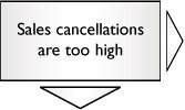 If the preceding Problem Categories aren't pertinent and the need is simply to sell more, the focus should be turned to the Customers' decision-making process. |  | The scope should be defined as being from "the time the need arises" to "when the order is placed" (i.e., the decision is finalized). In this case, use the Y=f(X1, X2,..., Xn) approach to determine the key Xs that drive the Customers' selection. The Y would be the dollars spent on our products. Go to Section C in this chapter. | |  | If the Customer is placing orders, but is canceling them later, this is a subtly different problem, but would follow the same roadmap. The scope should be defined as being from "the time the need arises" to "the time the purchase is solidified" (perhaps the product being used, or payment made or similar). In this case, use the Y=f(X1, X2,..., Xn) approach to determine the key Xs that drive the Customers' cancellation. The Y would be cancellations. Go to Section C in this chapter. |