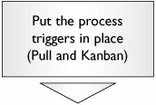 At this point, it is worth reexamining the triggers that ensure each activity begins correctly. These might be some of the key Xs, but this is important to do for the whole process. Triggers are known as Kanbans in the Lean Sigma world and ensure that Pull is occurring through the process; for example, when you are free to work on something, you have something to work on, unless there is no demand from the Customer. See "Pull Systems and Kanban" in Chapter 7, "Tools," for more detail. |  | For key points in the process, it is necessary to have signals to upstream steps that subsequent steps are ready to work; for example, in an Operating Room a trigger might go out to feeder processes that the current Patient procedure completes in 10 minutes. This allows the next Patient to be prepped and so on. This is a Pull System and the trigger is known as a Kanban. Without these, time is lost in the process when entities stall due to lack of readiness. |