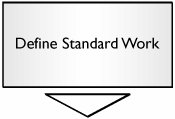 After you define the process, determine the triggers, and lay out and organize the process, the focus becomes ensuring that the process runs like this for all time. The beginning of this is known as Standard Work |  | Standard Work is the formal documentation of a group of tools that helps define the day-to-day running of the process. It is made up of Takt Time (the pace of market demand) For more details see "TimeTakt Time" in Chapter 7. Process Cycle Time (the pace that the process runs) For more details see "TimeGlobal Process Cycle Time" in Chapter 7. Total Work Content (how much labor time is involved in each step) Load Chart (graphical representation of Takt versus Cycle Time) Layout of the process Order of the process Work sequence (and timings) for the operators Work sequence (and timings) for any equipment/machines Standard inventory in the process