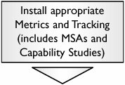 After the Standard Work is defined, the process can formally begin to perform in its newly prescribed way. To do this the Team needs to set the key Xs to their correct level. [Pages 112 - 113]|  | For the critical Xs, the levels determined earlier in the roadmap must be set in place. The formalized controls will also be implemented on these Xs at this time. For non-critical Xs, Team focus is on choosing the most appropriate (usually economical) settings. | |  | The key tracking metrics for the process will be the Ys and critical Xs. For each, if not already done so, a Measurement Systems Analysis will be required. For more details see "MSAValidity," "MSAAttribute," and "MSAContinuous" in Chapter 7. For each MSA, a regular revisit schedule is also required. After the Measurement Systems are deemed fit (the Team must mend them if not), then initial Capability Studies are made. Ideally on-line tracking is instigated or worst-case a schedule is set up to revisit Capability on a regular basis. | |  | For each role defined in the process, a role checklist or documented approach is createdin effect a "how to do the role." Note that sometimes there is confusion between people and roles. A role is the "chair to sit in"; a person is the "one that sits in the chair." Roles remain; people can come and go. | |  | Construct documentation for the process as a whole. The best documentation involves visuals, so rely heavily on Swimlane Maps and so on. Remember to include detail of key Xs, metrics, tracking, and reaction plans (these are sometimes overlooked). | |  | For each role in the process, the Team identifies the competences required to perform the role; think of this like a license. These competences must be written in objective language and their attainment should be readily measurable.[2] | |  | For each competence there needs to be provision of education and training to attain this competence. The actual training is not conducted at this point. | |  | Finally, the existing staff is layered back onto the process by examining their competences. The matrix of staff versus competence is known as a Skills Matrix. The tendency here is to overdo it and break out every tiny skill. The best approach is to keep it grouped to a maximum of 30 to 40 skills across the process or the Skills Matrix becomes too unwieldy. | |  | The Skills Matrix is in effect a large Gap Analysis on staff competency. From this, the Process Owner (not the Team) must construct the training plan to bring the staff up to the required levels. This might involve recruitment. | |  | Often the solution created is for a single line or entity type and there needs to be a rollout to other lines or entity types. A simple Milestone Plan helps communicate the rollout and improve the likelihood of a timely implementation. | |  | Most processes involve stakeholders who need to be informed of the impending changes. Constructing a Communication Plan ensures the appropriate parties are well informed. | |  | The actual rollout might or might not be considered part of the Lean Sigma project but is required by the business. (Signoff for the Lean Sigma Project could be based on the pilot process success.) It might be necessary to form separate implementation teams to take the changes to the rest of the organization. | |  | At first glance, the creation of a Final Report might seem like NVA work, but it is important to maintain organizational learning with respect to the project. In future projects, Belts will be able to refer back to the work done here and hopefully avoid unnecessary pitfalls. | |  | Validation is data-based and should be justified by a t-Test, usually a 2-sample t-Test, or similar to show that the changes made to the performance metrics are statistically significant. For example, that the gains are real. Reviewers should include the Champion, Process Owner, and a technical resource (Master Black Belt). The signoff represents the project coming full-circle and the final handoff to the Process Owner is complete. |