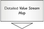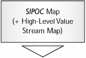 After the initial Project Charter is complete, the Project Team is mobilized, and shortly thereafter, the first Team meeting can take place. |  | To help define the whole process, a SIPOC is useful, especially in understanding the scope and purpose of the process. The SIPOC is an important tool in Discovery to address, "What really is the question to be answered?" The central "Process" column of the SIPOC can be extracted and rotated 90o to become a High-Level Value Stream Map (VSM). This map is a useful linear representation of the process that can help in slicing up the process into manageable pieces to which to apply projects. |