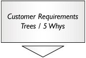 After the SIPOC is complete for the whole process, the next step is to determine the Customer Requirements (again for the whole process). This is done in a similar fashion to the regular Define approach by using a number of tools to identify the major customer needs and metrics to determine performance versus those needs. [Pages 117 - 118]|  | To help frame what questions to ask the Customers regarding the process, it is useful to spend time as a Team brainstorming the issues around it. This can be done in the form of traditional Brainstorming, but it is preferable to use the tool known as Murphy's Analysis. Note that the output of these tools is absolutely not the Voice of the Customer (VOC), but rather, these are the Team's internal insights to help guide the structure of the VOC questioning in the subsequent steps. | |  | Based on the some of the learning from the internal brainstorming, it should be reasonably straightforward to put together an Interview Discussion Guide and Customer Matrix and then interview Customers. Richness of Customer data is based on diversity of Customers, not on quantity, and thus, 1220 interviews should be enough to frame even the most complex process. Interviewing can take one to two weeks to complete, so plan the Team's time accordingly. See "Customer Interviewing" in Chapter 7, "Tools," for more detail. | |  | Some processes have a vast multitude of Customers from whom the Team would like some input to ensure that nothing key is missed, but really don't want to spend time interviewing in depth. To gain these Customer inputs, use a survey that is mailed, handed directly to them, or, primarily for internal Customers, posted on the wall where they can write directly on it. The survey usually will take one week to get the data back. Surveys are notoriously error prone, so do not rely on this as your main source of Customer inputuse the interviews instead. For more detail see "Customer Surveys" in Chapter 7. | |  | The VOC is distilled down into useful information by applying an Affinity Diagram. | |  | After the Affinity Diagram is complete, a simple extraction yields the Customer Requirements Tree. This Tree represents a simple hierarchical structure of needs from the highest abstract level down to individual facts and measures. To successfully create the Tree, it is often best to track the noted metrics back to the set of more essential metrics behind the scenes. A useful tool here is the 5 Whys. | |  | Construct a rigorous VSM including all the detailed steps for the Primary Entity as it progresses through the process. At this point, don't map the sub-steps of any VA step. The VSM forms the structure around which the process is sliced to form discrete pieces of process upon which projects are based. | |  | Examination of the VSM should help the Team identify several key milestones along the process that are useful points at which to take performance readings. The performance metrics (such as accuracy ratings) are the Ys along the process that are important to the Customer. Determine the Ys taking the output of the Customer Requirements Tree and firming up Operational Definitions of the key metrics. For more details see "KPOVs and Data" in Chapter 7. For each metric, a baseline measure is made. These and other points are the timing points, sometimes known as Time Stamps, used in the Multi-Cycle Analysis conducted subsequently. | |  | Apply a Multi-Cycle Analysis to the VSM to flesh out where the time is spent, along with an indication of variation in times. Usually, it is the variability in step times that causes the problems. | |  | The Team examines the data collected from the previous tools to populate the VSM with data on the timings and the Ys. At this point, the Team, Belt, Champion, and Process Owner meet to identify projects within the VSM and prioritize them. Projects should target sections of the process for which: For each Project identified, a draft Project Charter should be created and then the Projects should be prioritized. Prioritization can be done with a Cause & Effects Matrix[3] or just by selecting the areas of greatest pain. |