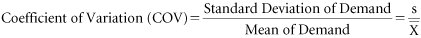 The COV is used rather than the standard deviation because it is the size of variability relative to the total level of demand that is important, rather than the size of the variation itself. For example, if there is demand for an entity type from the Customer with a mean of 1,000,000 units per month, then a standard deviation of 50 units is neither here nor there and the demand is considered to be smooth. However, if the mean of the demand is only 100 units and the standard deviation is the same 50 units, then the demand cannot be considered as smooth. The general rule here is that a COV less than 1 is considered to be very smooth. A COV greater than 2 is highly variable.