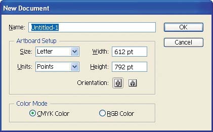 | Now that we have set up Illustrator's color settings, we can create, edit, and output artwork in a color-managed environment. The color workflow in Illustrator uses the same concepts and features as that in Photoshop, with a few exceptions. Creating Color-Managed Illustrations When you create a new document in Illustrator, you can choose either RGB or CMYK as the color mode, which in turn defines the color management that's applied to the file. 1. | Launch Illustrator if it is not still open.