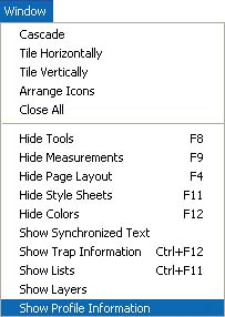 The onscreen representations of the images we've placed in the docu-ment have been adjusted according to the settings in the Quark CMS Preferences dialog box. The profile embedded in the Tulips.tif image determines the source of the data, while the settings designated in the Quark CMS Preferences dialog box determine the profile used for the Leaves_untagged.jpg image. The Display Simulation option, which we have set to Monitor Color Space, instructs QuarkXPress to transform any spot colors from their source color spaces to the display color space (set by the Monitor Destination Profile preference) to accurately display them. Viewing Image Profile Information and Assigning Spot Colors QuarkXPress provides the ability to assign each element on the page with a unique source profile. This source profile is used to convert to a destination profile for printing and proofing. In this exercise, we'll learn how to view and apply profiles to images and to objects created in QuarkXPress. 1. | From the main menu, choose Window > Show Profile Information.