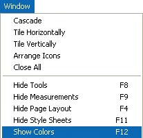 Note  | If Show Colors isn't visible in the Window menu, but instead you see Hide Colors, then the Colors palette is already open. Release the mouse without toggling the palette off. |