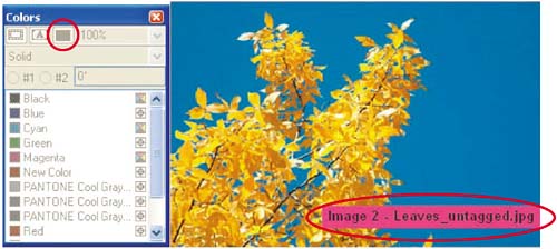| 6. | Repeat Step 4 for the Image 2-Leaves_untagged.jpg text box, choosing Magenta to fill the text box.
